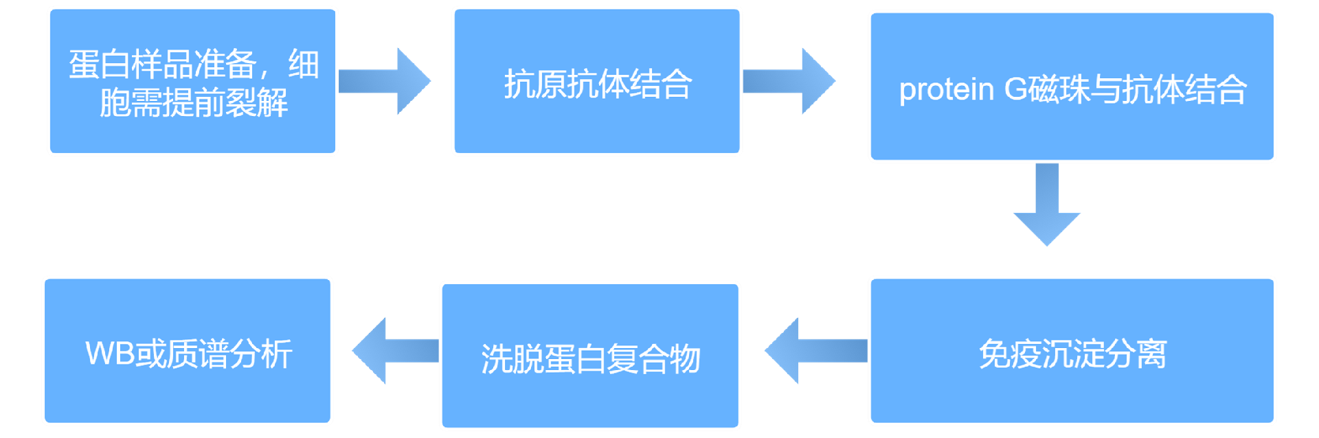 免疫共沉淀是利用抗原和抗体的特异性结合以及细菌的ProteinG或A能特异性地结合到免疫球蛋白的Fc片段的方法。其基本原理是在细胞裂解液中加入感兴趣蛋白的抗体,孵育后再加入与抗体特异结合的结合于磁珠的ProteinG或A,若细胞中存在与兴趣蛋白相结合的目的蛋白,就可以形成蛋白复合物:“目的蛋白—兴趣蛋白—抗兴趣蛋白抗体—ProteinG或A”;最后通过免疫印迹实验来检测目的蛋白。